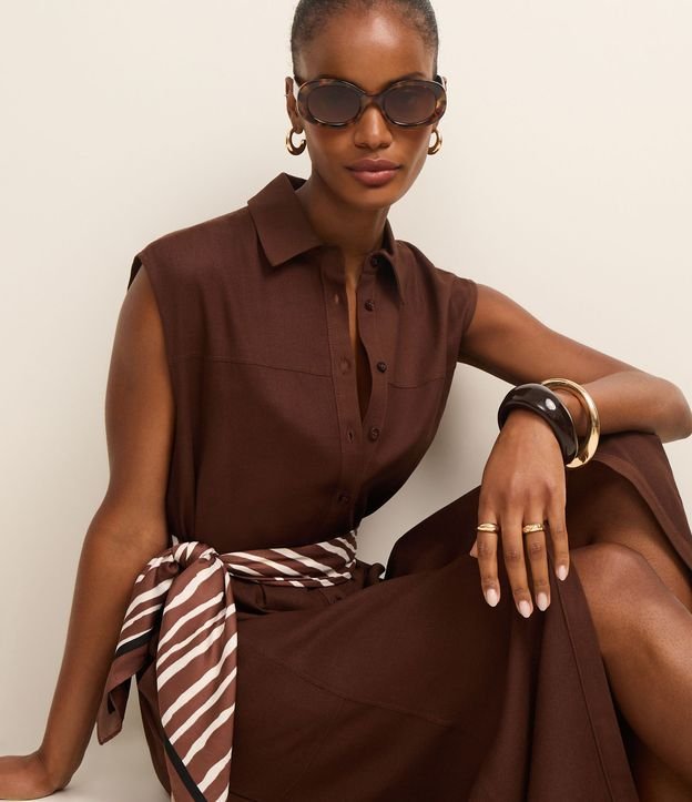 Vestido chemise feminino confeccionado com viscose mais sustentável e linho.