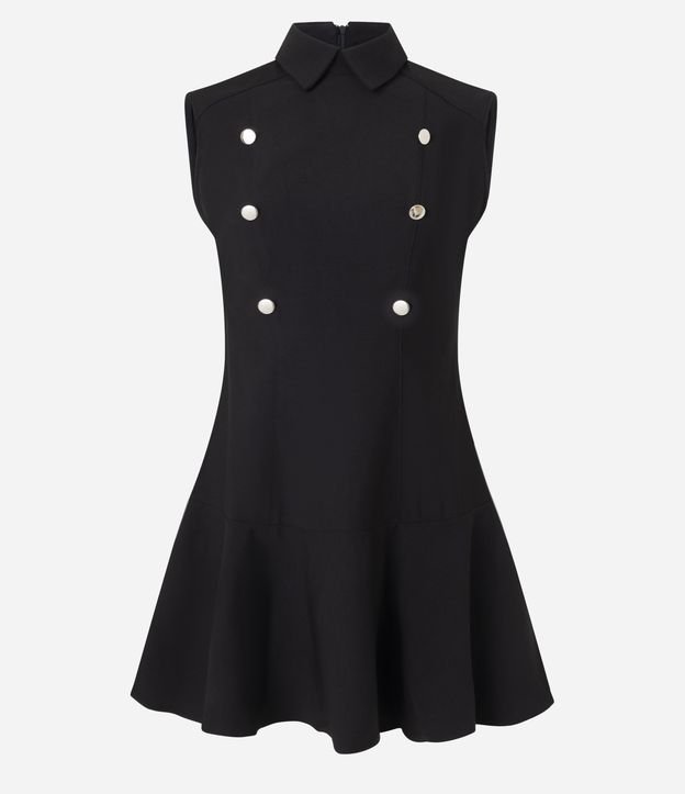 Vestido Curto Alfaiatado com Gola Padre e Botões Contrastantes Preto