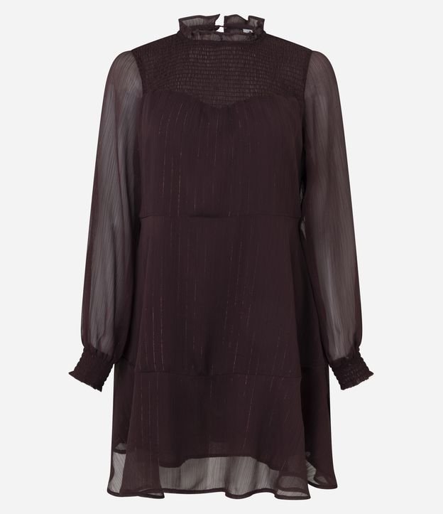 Vestido Curto com Golinha Alta e Saia Gode Marrom