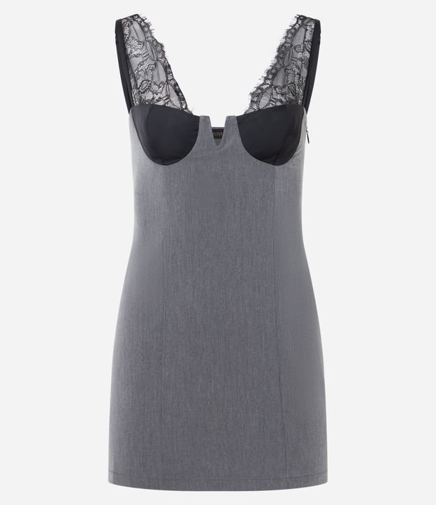 Vestido Curto de Alcinha com Recorte Lingerie e Decote V Cinza