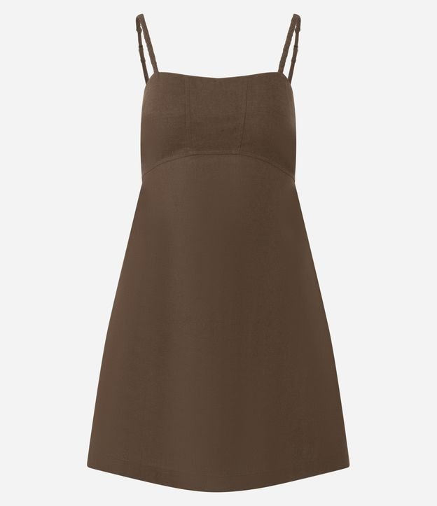 Vestido Curto de Alcinha Trançada com Detalhe no Busto Marrom