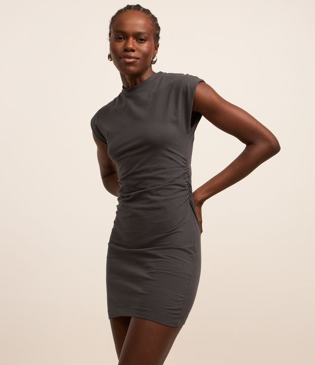 Vestido Curto em Algodão com Golinha Alta Cinza
