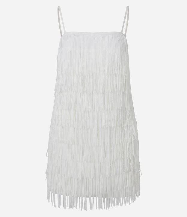 Vestido Curto em Chiffon com Franjas em Camadas Branco