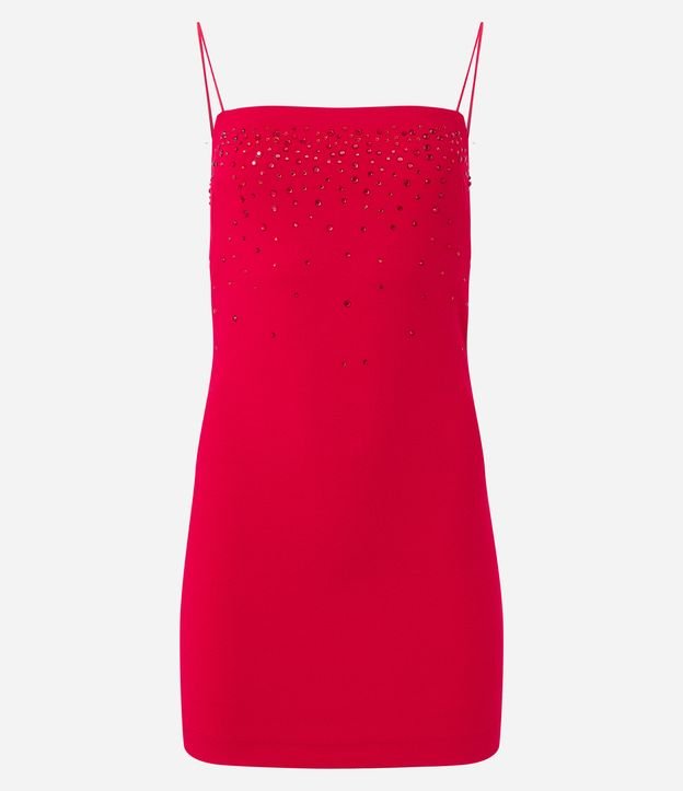 Vestido Curto em Crepe com Brilhos Aplicados e Zíper Lateral Vermelho