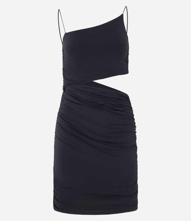 Vestido Curto em Jersey com Recorte Vazado na Lateral e Franzidinho Preto