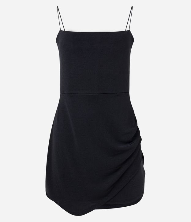 Vestido Curto em Meia Malha com Alcinha Fina Barra Assimétrica e Brilhos