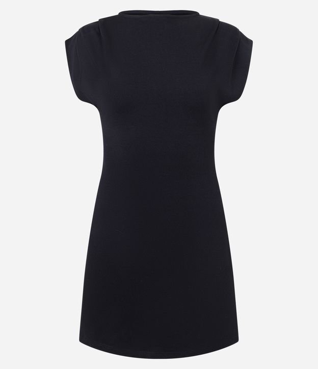 Vestido Curto em Ponto Roma com Ombro Drapeado Preto