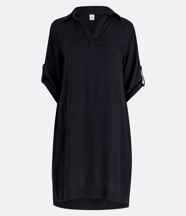 Vestido Curto em Sarja com Gola Lapela e Detalhe Lateral na Manga