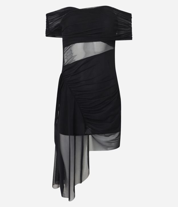 Vestido Curto em Tule com Decote Ombro a Ombro e Detalhe Assimétrico Preto