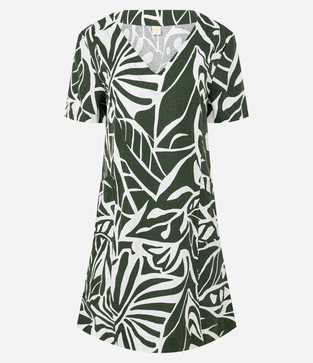 Vestido Curto em Viscolinho com Decote em v Estampado Verde