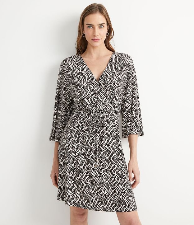 Vestido Curto em Viscolycra com Decote V Transpassado e Estampa Poá