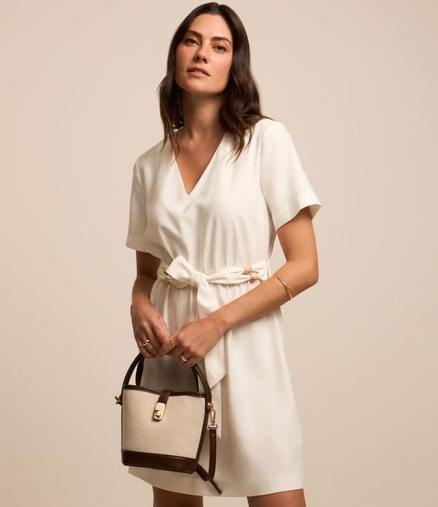 Vestido Curto em Viscose com Cinto Tecido com Miçangas Branco