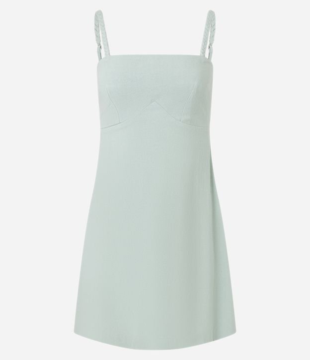 Vestido Curto em Viscose e Linho com Alcinha Trançada Verde