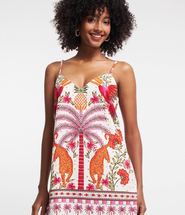 Vestido Curto em Viscose e Linho com Estampa Onças