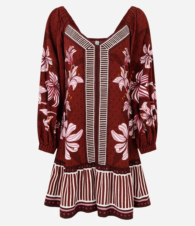 Este vestido feminino é confeccionado em viscose mais sustentável, com estampa de folhagem em tons profundos e sofisticados, trazendo manga longa 3/4, decote em V e modelagem godê curta que garante movimento, leveza e feminilidade. O design fluido e elegante transforma a peça em uma escolha perfeita para produções marcantes.