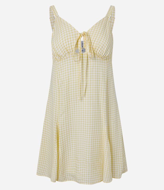 • Vestido Curto Evasê em Viscose com Estampa Xadrez Amarelo 1