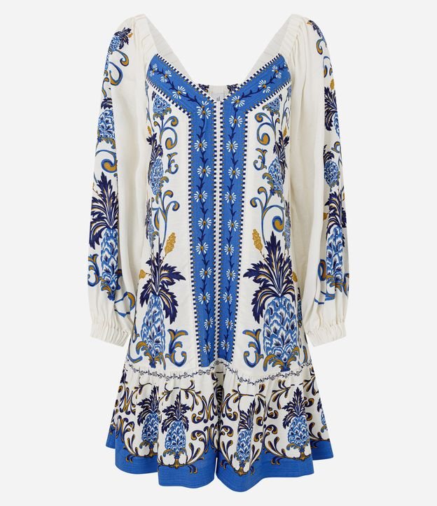 Sair e arrasar em festas e happy hours pede um look glamouroso que valorize o brilho das suas noites especiais. Este vestido feminino é confeccionado em viscose mais sustentável, com estampa floral fullprint em tons de azul e off-white, trazendo manga longa 3/4, decote em V e modelagem godê curta que garante leveza, movimento e feminilidade. O design elegante e fluido torna a peça ideal para composições sofisticadas e cheias de personalidade, perfeitas para viver seus melhores momentos com estilo.