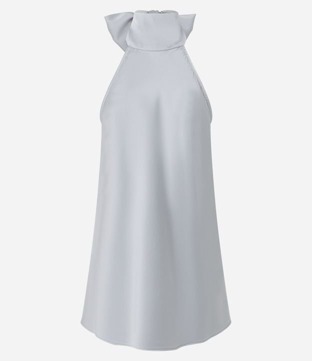 Vestido Curto Frente Única em Cetim com Gola Halter Cinza