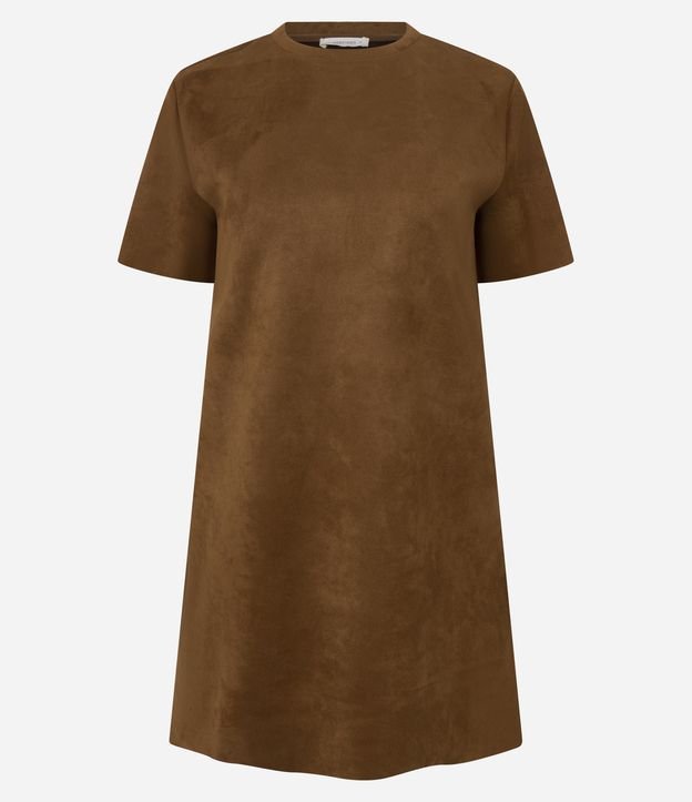 Vestido Curto Reto em Suede com Gola Redonda Marrom