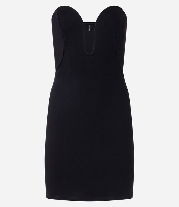 Vestido Curto Sem Manga em Ponto Roma com Decote Coração Profundo Preto