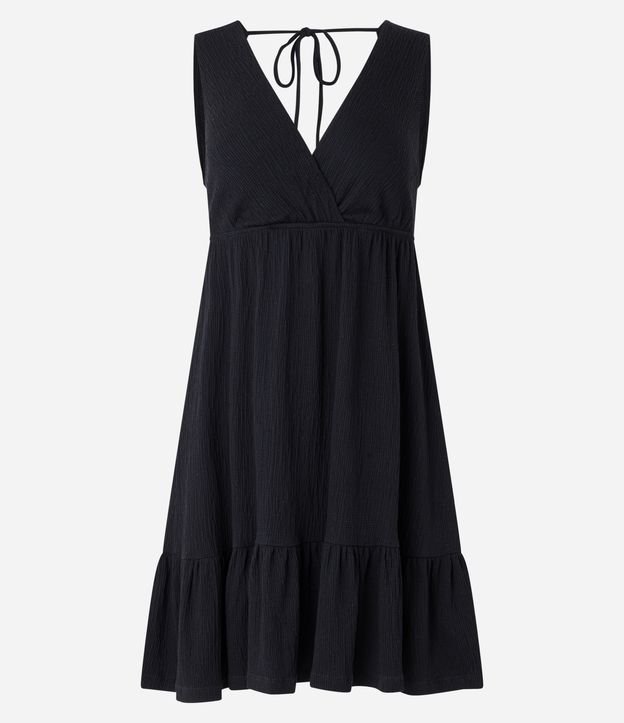 Vestido Curto Texturizado com Amarração e Babado na Barra Preto