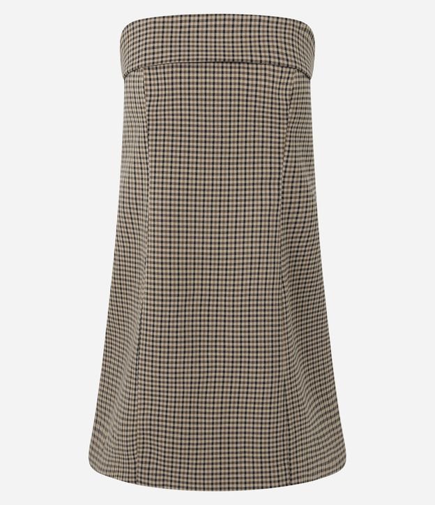 Vestido Curto Tomara que Caia Alfaiatado com Estampa Xadrez Marrom