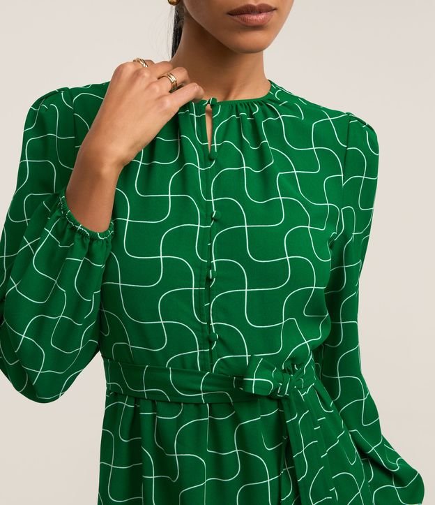 Vestido em Airflow com Manga Bufante e Amarração na Cintura