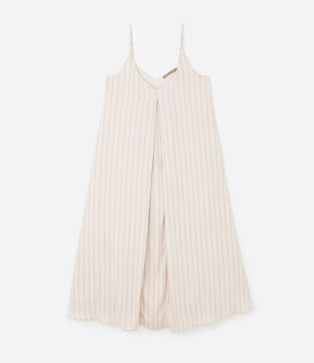 Vestido plus size confeccionado em viscose chalis, com decote V e alças finas reguláveis. Possui estampa de listras horizontais, detalhe de prega frontal e forro.