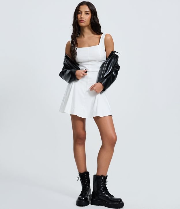 Vestido Evasê Curto em Bengaline Com Decote Quadrado Branco