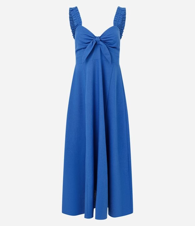 Vestido Evasê Longo em Viscolinho com Laço no Busto Azul