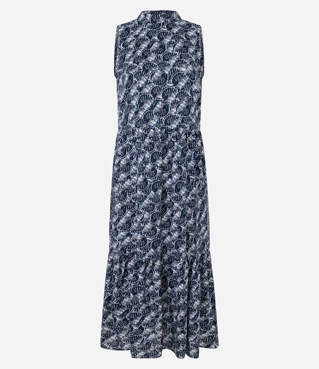 Vestido Evasê Longo em Viscose com Estampa Conchas Azul Marinho