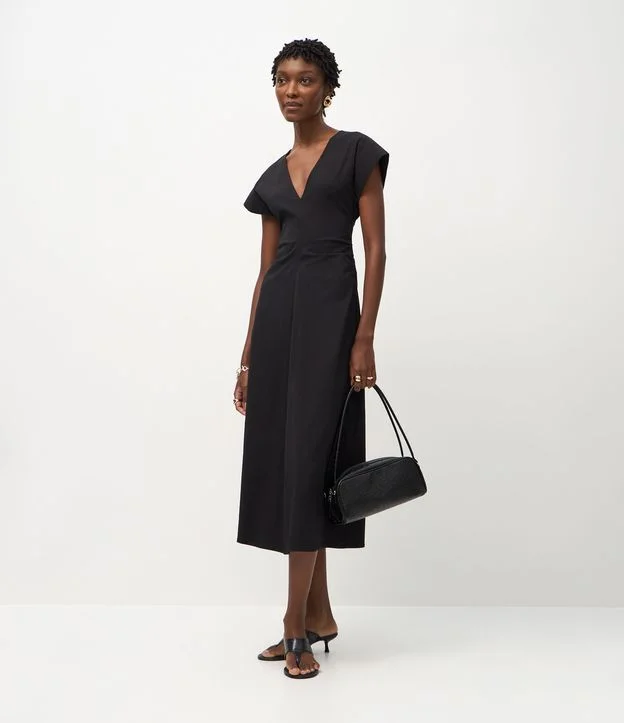 • Vestido Evasê Midi com Franzidos nas Laterais Preto 1