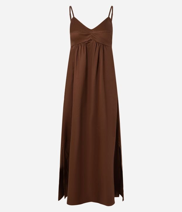 Vestido Evasê Midi de Alça em Liocel com Fendas Marrom