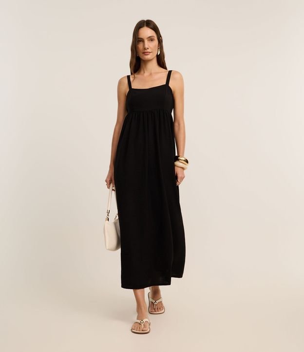 Vestido Evasê Midi em Airflow com Decote Coração Preto