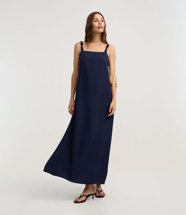 • Vestido Evasê Midi em Viscose com Aviamento na Alça Azul Marinho 1