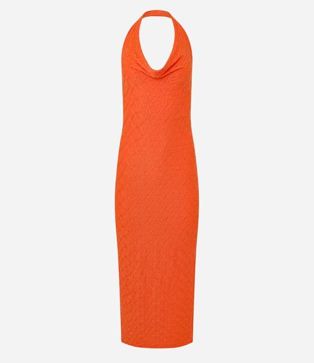 Vestido Frente Única com Decote Halter e Franzido Lateral Laranja