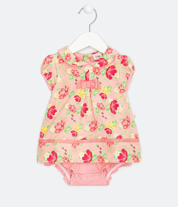 Vestido Infantil Body em Suedine Floral - Tam 0 a 18 meses