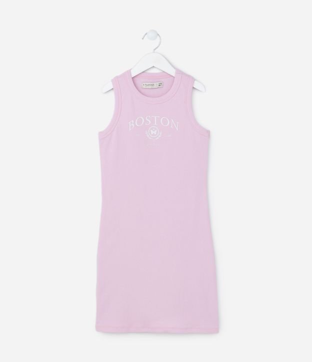 Vestido Infantil Canelado com Lettering Boston - Tam 7 a 14 Anos Rosa