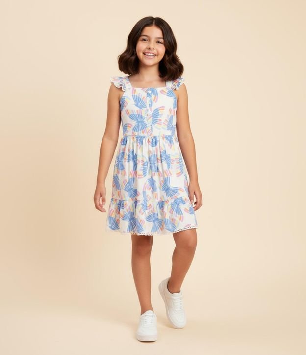 Vestido Infantil com Babados e Estampa Borboletas - Tam 5 a 14 Anos Multicores