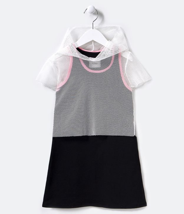 Vestido Infantil com Blusa Sobreposição de Tela - Tam 5 a 14 anos