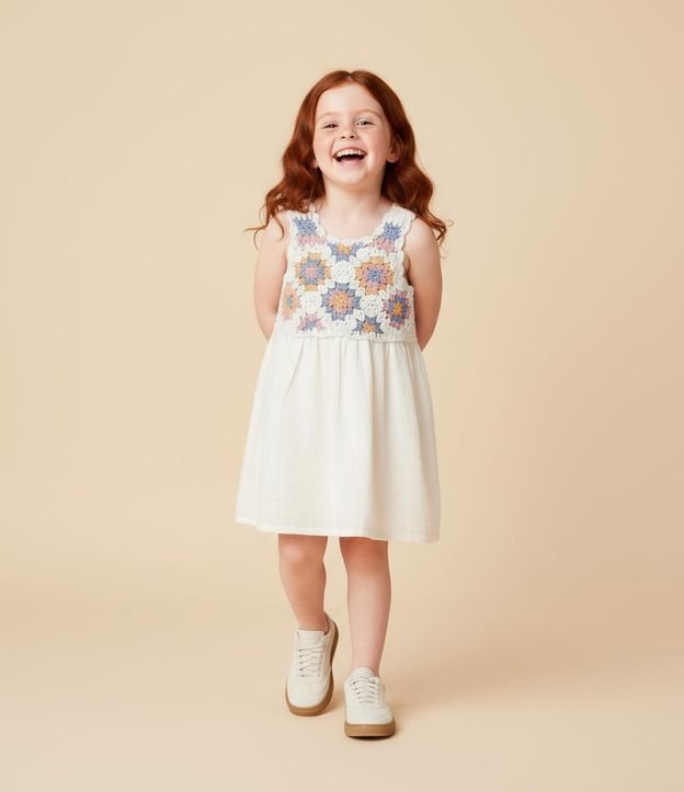 Vestido Infantil com Busto de Efeito Crochê - Tam 1 a 6 Anos