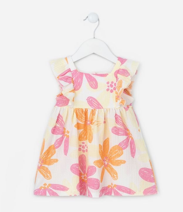 Vestido Infantil com Estampa Floral e Textura - Tam 0 a 18 Meses Multicores