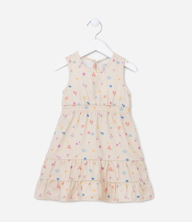 Vestido Infantil com Estampa Floral Elástico na Cintura e Babados na Barra - Tam 1 a 5 Anos
