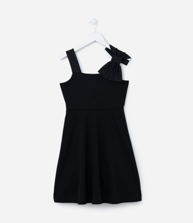 • Vestido Infantil com Laço no Ombro - Tam 5 a 14 Anos Preto 1