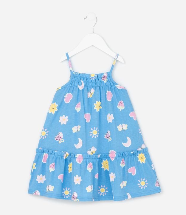 Vestido Infantil em Algodão com Estampa de Frutinhas - Tam 1 a 6 Anos Azul