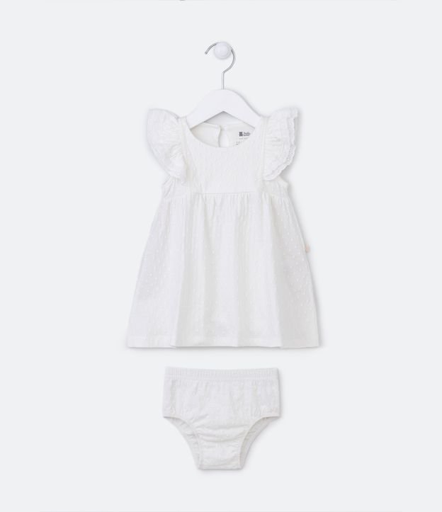 Vestido Infantil em Algodão Texturizado Acompanha Calcinha - Tam 0 a 18 Meses