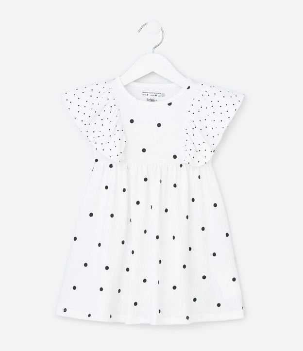 Vestido Infantil em Anarruga com Estampa Poá- Tam 1 a 6 Anos Branco
