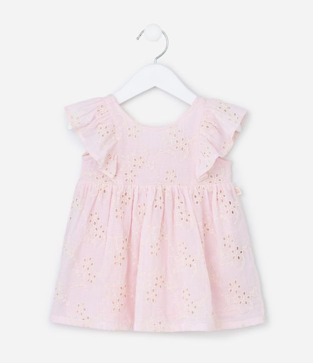 Vestido Infantil em Broderie com Babadinhos e Calcinha - Tam 3 a 18 Meses Rosa