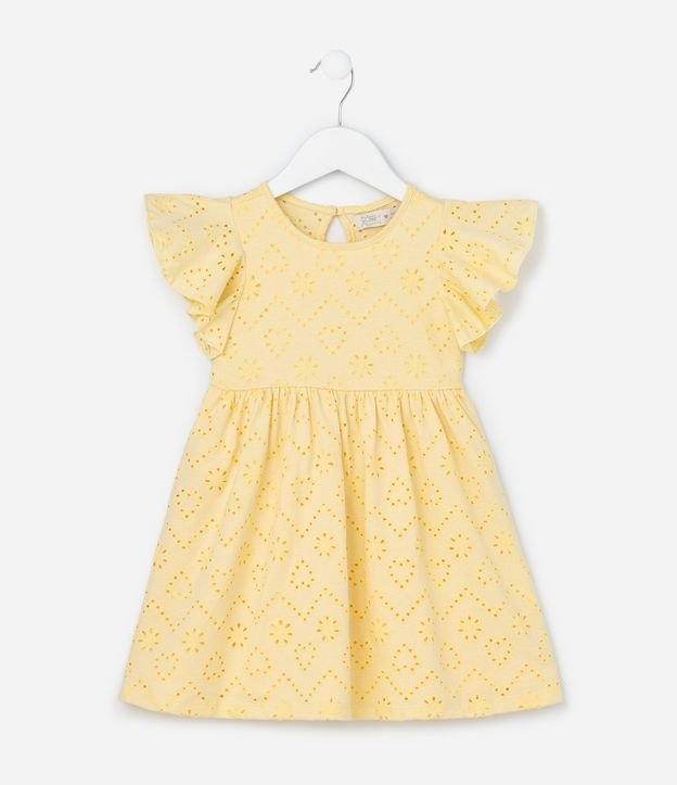 Vestido Infantil em Broderie com Detalhe Gota - Tam 1 a 6 Anos Amarelo