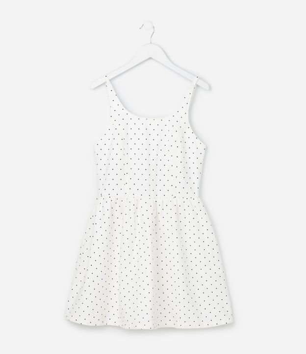 Vestido Infantil em Sarja com Estampa Poá - Tam 7 a 16 Anos Branco/Preto